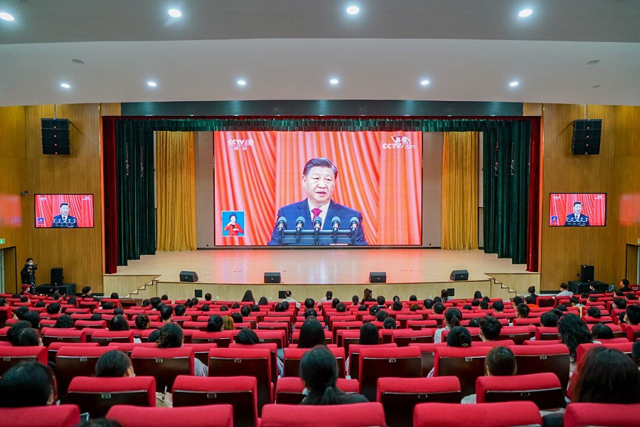 本网讯(转载自桂园在线 通讯员 张百川 李经玺)举国关注,举世瞩目,10月16日上午10时整,中国共产党第二十次全国代表大会在北京人民大会堂隆重开幕,习近平总书记代表第十九届中央委员会向大会作报告。365电子娱乐官方网站全体师生员工热切关注这次盛会,通过网络、电视、广播、户外大屏幕等各种形式观看了大会开幕盛况,2685名师生在分布于全校各个单位的45个集中收看现场观看了党的二十大开幕会。