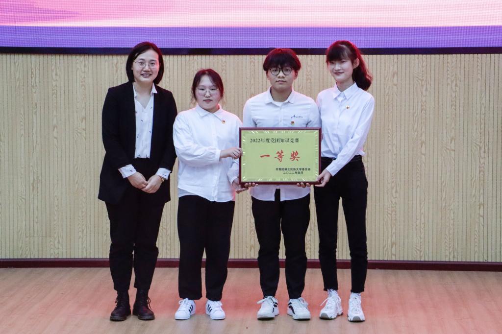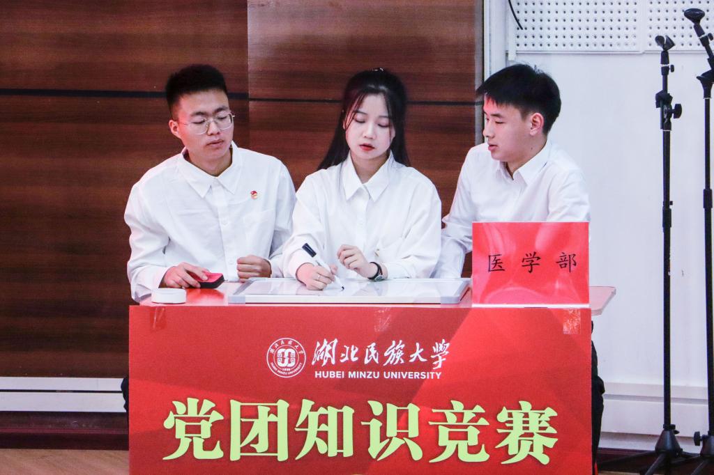 经过激烈角逐,美术与设计学院、法学院、经济与管理学院、医学部、教师教育学院共5个代表队跻身决赛舞台。本次比赛分为基础问答和抢答两部分。基础问答环节,各组选手集中精神,反复思考,充分展现出我校团员青年扎实的知识功底和团结协作精神。抢答环节,各组选手反应迅速,比分一路紧咬,现场气氛紧张。最终法学院以优异成绩摘得桂冠。