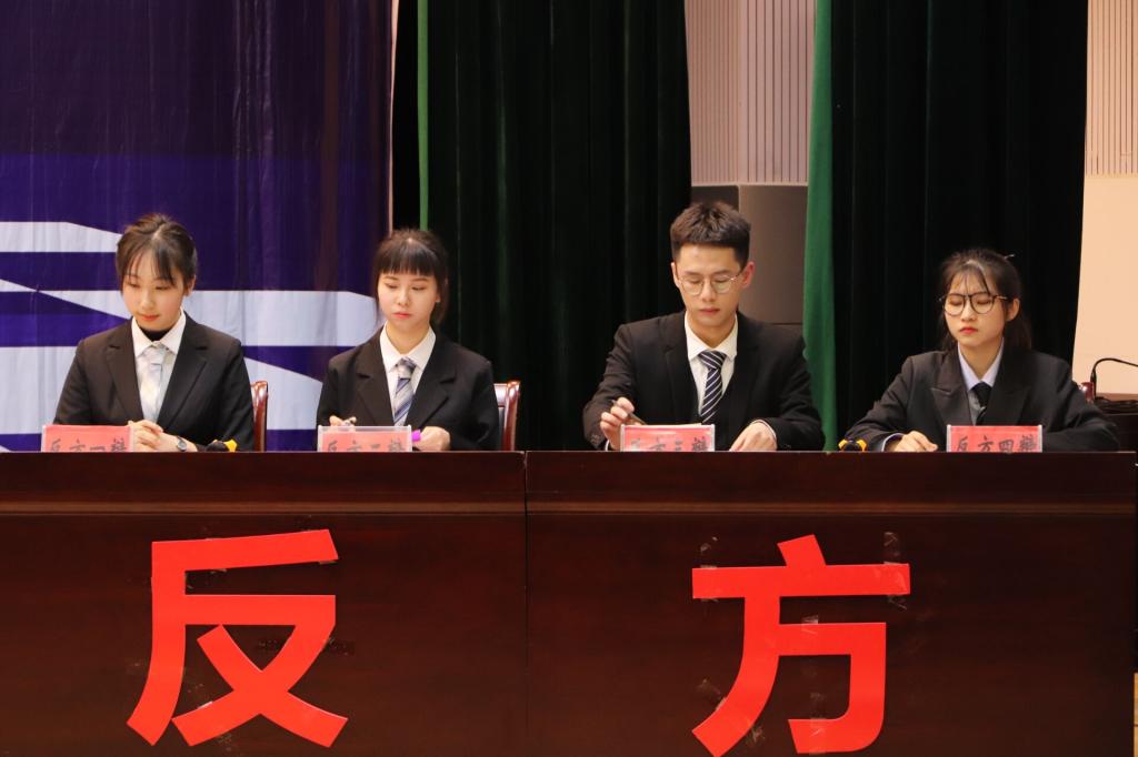 在冠军争夺赛中,正方教育学院从“高等教育需求”“教育评价”“期末考试的不合理性”这三个方面来论证“高校应当取消期末考试”;反方文传院则围绕“结果评价导向”“综合评价导向”两个方面反驳正方观点从而引出“高校不应当取消期末考试”的结论。攻辩环节,双方辩手围绕己方观点,抓住对方漏洞进行一对一攻辩,环环紧扣,辩驳有力,现场掌声不断。在自由辩论环节,双方引经据典,尽显辩才。