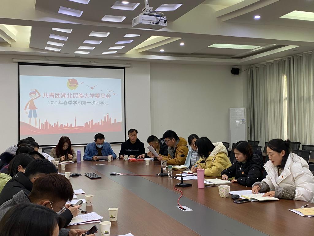 3月9日下午,我校在学工会议室召开2021年春季学期第一期团学会。校团委全体老师、各学院(部)团总支书记、学生会秘书长参加会议。会议由团委副书记谢晖主持。