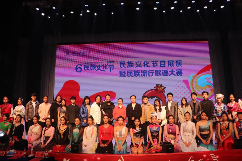 本网讯(王媛 付玮婷/图)11月27日晚,我校第六届民族文化节节目展演暨民族流行歌谣大赛于音乐舞蹈学院演播厅举行。校团委书记方云霞,音乐舞蹈学院副院长谷秋阳,校团委副书记谢晖,音乐舞蹈学院学科建设科科长谷穗,文学与传媒学院老师谭若冰担任评委。现场座无虚席,现场还通过云小青---“云端桂花园”进行直播。