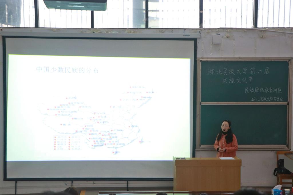 本网讯(记者 张玉婷/文 廖子怡/图)1126日下午,我校于修远楼5b404举办民族团结教育讲座,民族学与社会学院副教授姜爱担任本次活动主讲人,现场听众约300人。