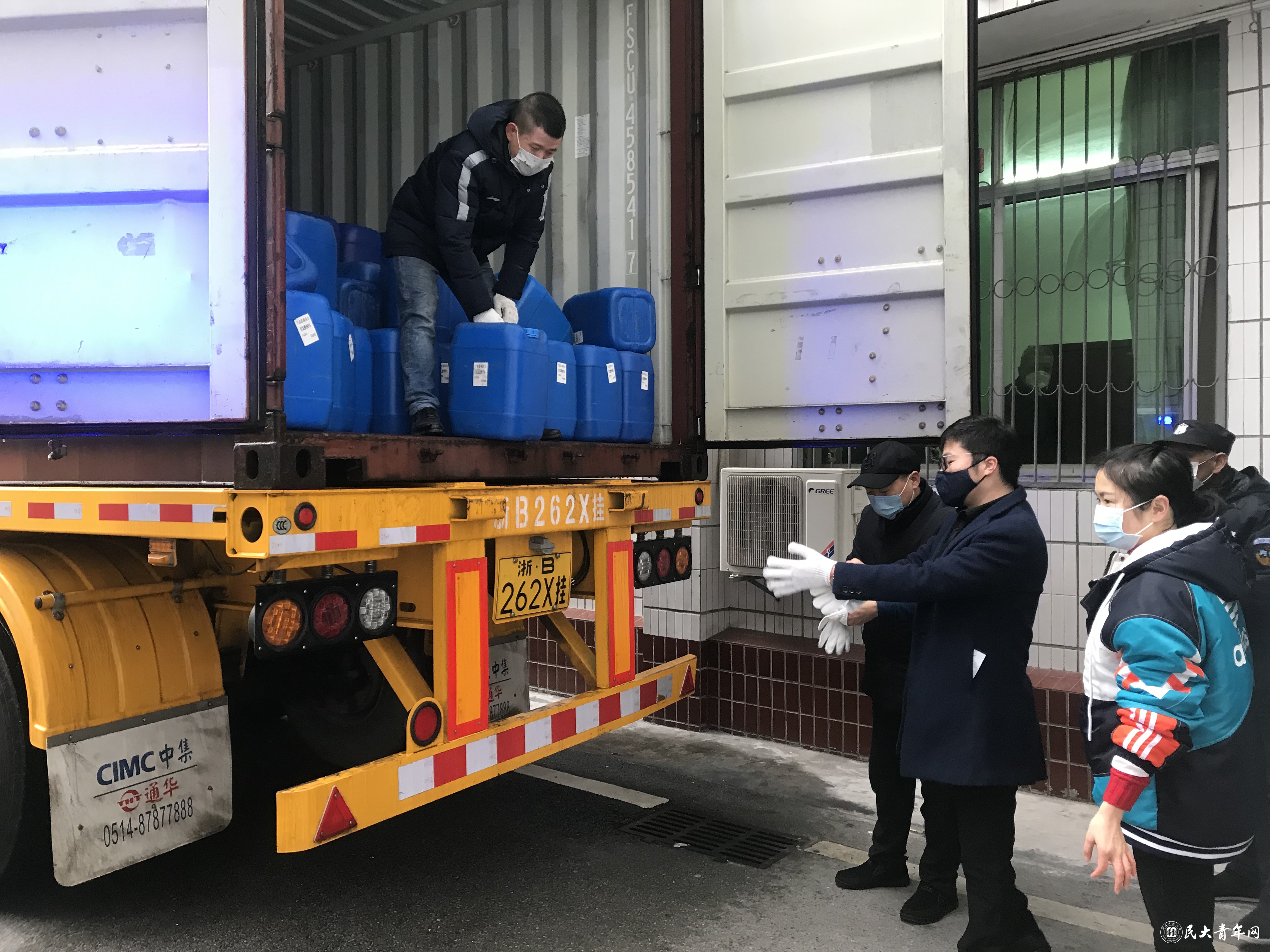 “近段时间,爱心医用物资会陆续分批抵达我们学校,基本每天我们要到现场登记、分配、发放物资,工作量还挺大的。前期招募了很多青年志愿者,但因疫情严重封路,志愿者不能到现场帮忙分配发放物资,我们校团委的老师们全员上阵,希望第一时间将爱心物资分配发放到防疫一线,及时送到医务人员手中,”365电子娱乐官方网站团委书记方云霞在医用物资分配现场说道:“在这次行动中,青年企业家秦柳积极对接联系宁波市恩施商会,短短两三天时间内,就募集到资金十余万元,防护物资若干批,今天发放的消毒液中就有388桶由他个人捐赠。”