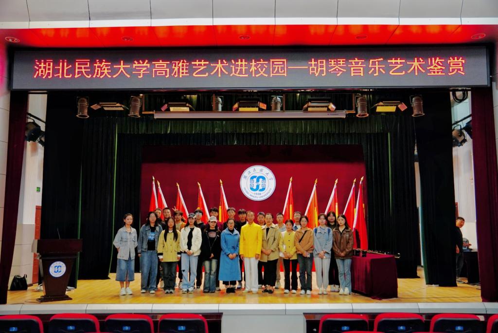 10月8日晚,由校团委主办的“高雅艺术进校园—胡琴音乐艺术鉴赏”活动在行政楼1号会议室举办。本次活动特邀一级演奏家车定祥教授授课,校团委书记吴珊,音乐舞蹈学院党总支部副书记邓丽出席本次活动,来自各学院(部)的师生代表共三百余人参与活动。
