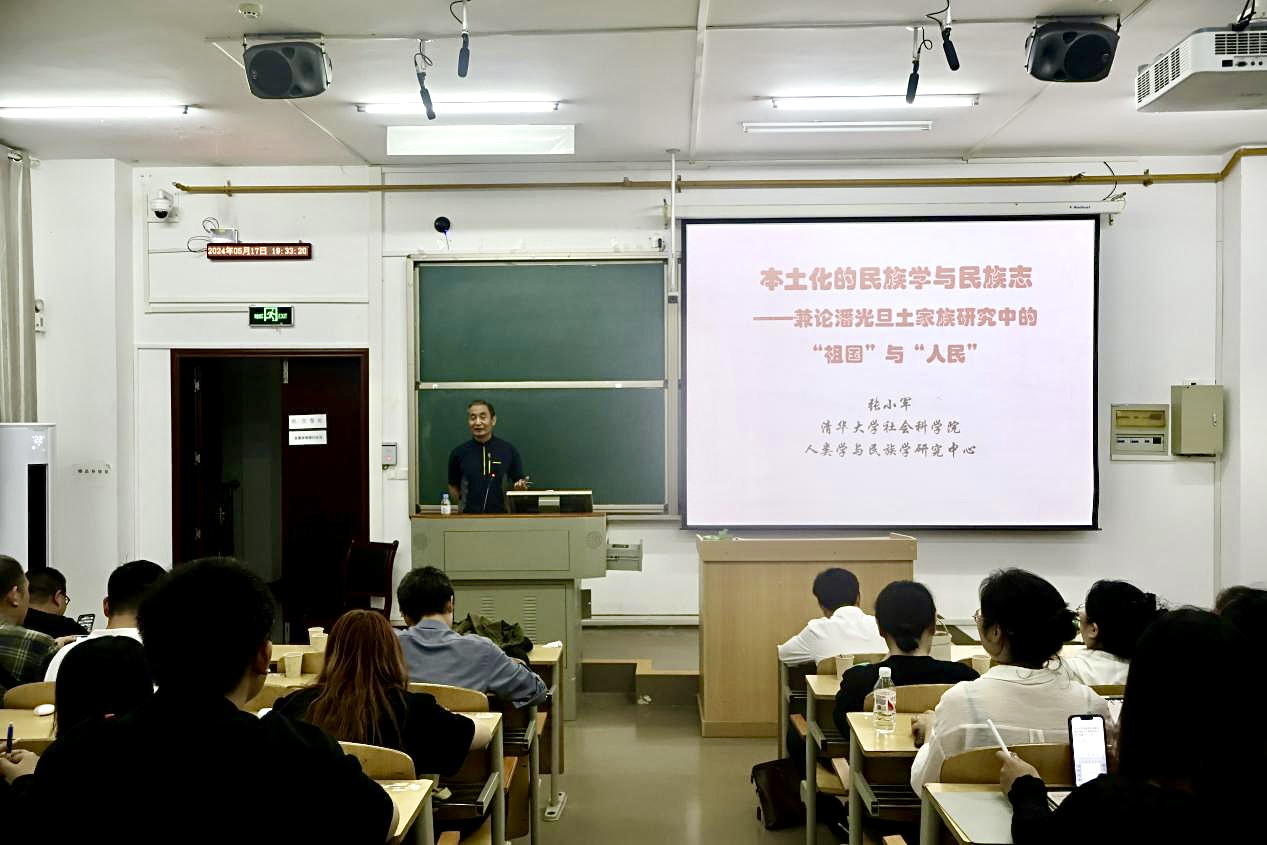 张小军从我国民族文化和民族地区的背景出发,阐述民族学的概念及其重要性,回顾民族学及其“民族志”的发展脉络,探讨社会学家、民族学家潘光旦教授在土家族研究中的贡献。最后,他耐心解答了在场学生的问题,与他们深入交流学科之间的联系和差异。