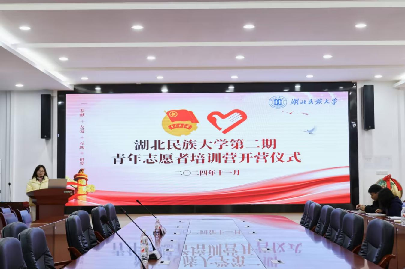 11月24日,我校第二期“青年志愿者”培训营在经济与管理学院附303会议室举行。恩施巴硒客餐饮管理有限公司总经理、恩施市义工协会副会长、全国家庭教育指导师、国家心理健康指导师、恩施公益小天使发起人汪娜,现任恩施州五彩社会工作服务中心副理事长、恩施州人大代表及其常委会委员、湖北省十四届青年委员、中级社会工作师吴欣,校团委社会实践与志愿服务部主任张典应邀出席,校青协、院青协、公益类社团志愿者代表共70人参与会议。