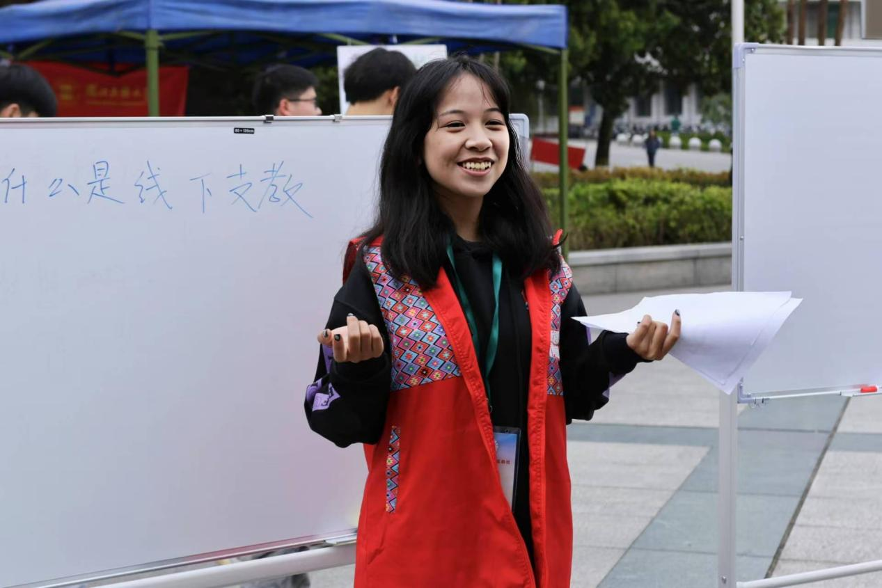 聆听感动,传递星光,红徽章协会、卡普摄影社和心理协会在志愿故事分享区倾听同学们的志愿故事、红色故事。大学生心连心互助社社长黎亚辉分享了自身支教经历,他回忆道:"孩子们下课后总会围过来,期待地问什么时候能再来上课",真挚的话语道出了志愿服务的意义与价值。分享结束后,可抽取盲盒礼物,让故事的温度化为可触的惊喜。心理协会同步开展心理疏导服务,为公益行动注入心灵关怀。