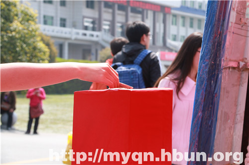 背着双肩包、身材不太高大的男生,在捐赠帐篷前停下,取下双肩包,拿出钱和一个小纸条,把钱放进募捐箱,“可以帮我把这个纸条转交给她们吗?谢谢了!”扭头转身离开,涌入湖北民族学院学生人潮之中。在场工作的志愿者叫他,让他留下自己的姓名,他始终没有回头。身着红色上衣的中年妇女看到此次活动,从钱包里拿着100元投进募捐箱,不愿留下姓名,也转身离开。很多学生选择“秒捐”的方式,成群结队的学生跑着来到募捐点,直接把钱塞进募捐箱,迅速跑着离开。