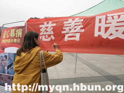 本网讯(记者 翁玉英 郑静静 杨青/文 章长慧 刘阳河/图)2月24日,一份“爱心募捐,请帮她重回舞台”的海报刷爆我校学生的朋友圈。25日,我校音乐舞蹈学院学生在大学生广场为张鑫同学发起一场主题为“慈善暖人心,患难见真情”的爱心募捐活动。