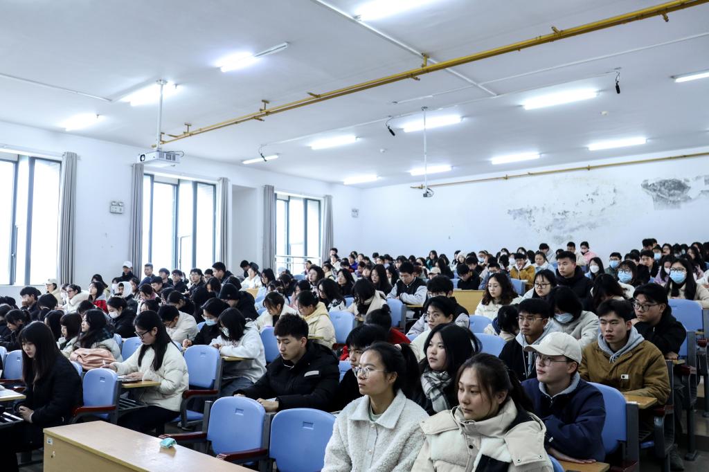 随后,校团委书记吴珊向全体学生干部传达共青团湖北省第十五次代表大会会议精神。她对学生干部提出三点希望和要求:一是提高政治站位,勇于担当,做一个有情怀的学生干部;二要明晰工作目标,勤于思考,做一个有思想的学生干部;三要提升综合素质,敢于吃苦,做一个有本领的学生干部。最后,她寄语学生干部:“躺平不可取、躺赢不可能、奋斗正当时!”
