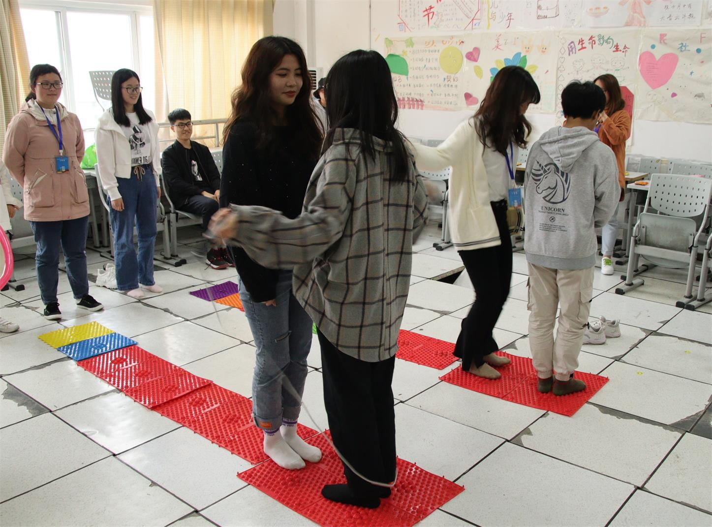 活动主要由三个趣味游戏构成,分别是逢“七”过、一穿到底和疯狂指压板。其中,在逢“七”过中,全体成员共同参与此游戏,它不仅考验着成员的反应能力,还能够提高成员参与感。一穿到底和疯狂指压板这两个游戏通过分组的方式进行比拼,更加侧重团队协作,考验着成员的耐力及默契,指压板游戏益于缓解疲劳,疏通经络。活动最后,成员们集体合影留念。