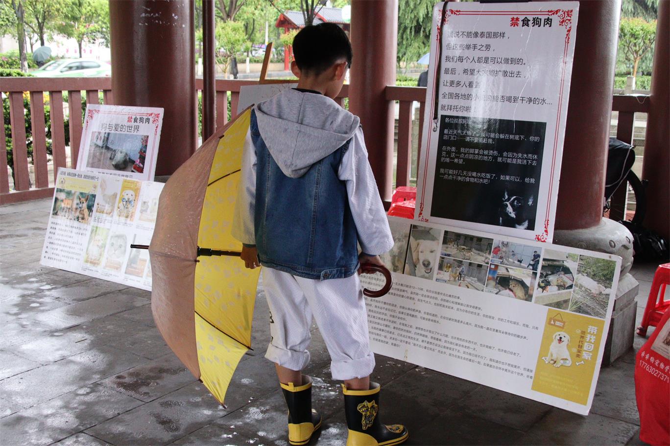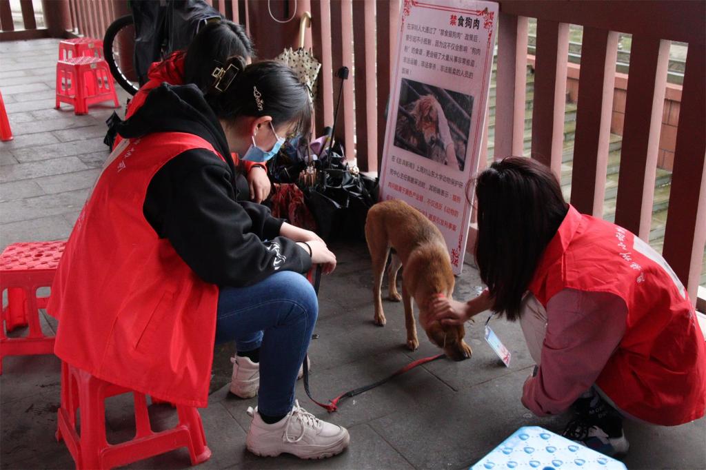 活动伊始,志愿者们与恩施市流浪动物保护协会的工作人员在活动现场共同布置会场,志愿者利用横幅、宣传栏、音响等设备向现场群众进行宣传,呼吁“用领养代替买卖”。此外,志愿者分为两个小队,一队志愿者向有意领养者介绍基本领养常识,做一个合格的领养者,另一队志愿者为领养者讲解领养要求及后期回访要求等,希望被领养的流浪狗能拥有一个良好的生活环境。活动尾声,志愿者及流浪动物保护协会工作人员对流浪狗进行喂食、喂水,并清理活动现场。