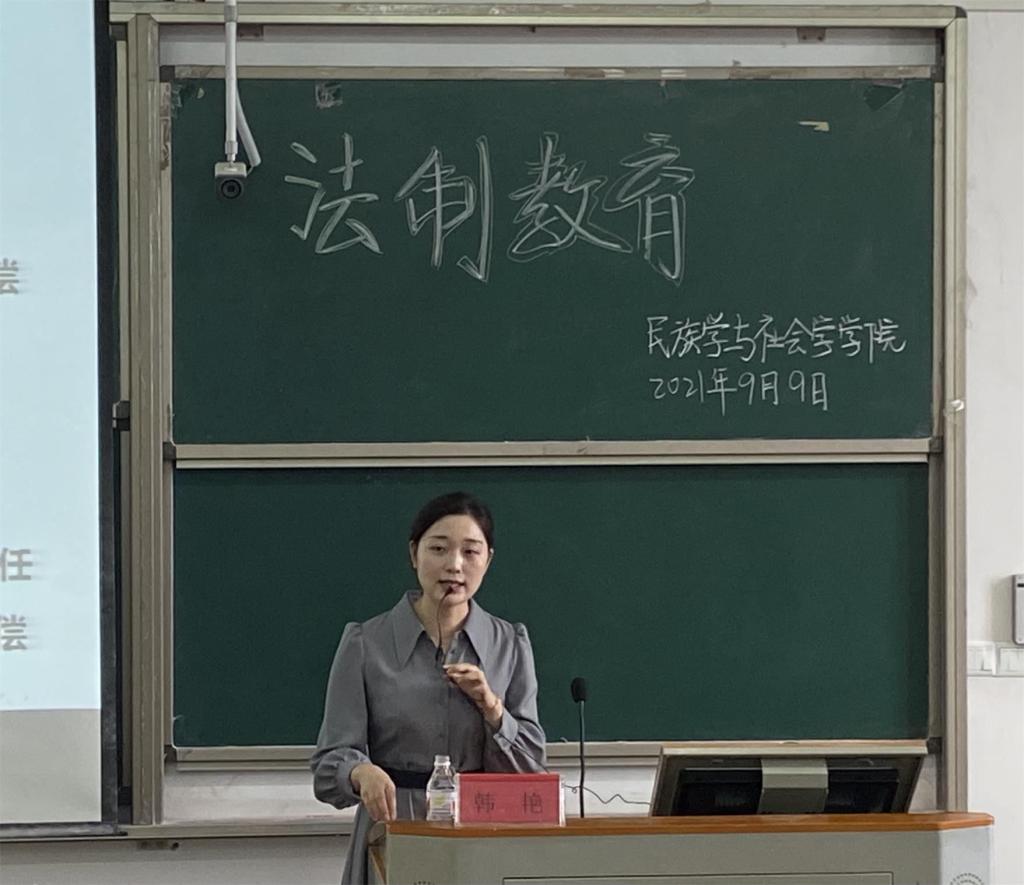 本网讯(记者 欧阳洁/文 戴启栋梁/图)为帮助新生了解法律知识,增强其法律意识,9月9日,我院学生会权益部在5A501教室举办法律知识宣讲教育讲座。湖北新理念律师事务所韩艳律师受邀担任主讲人,我院全体大一新生出席参与活动。