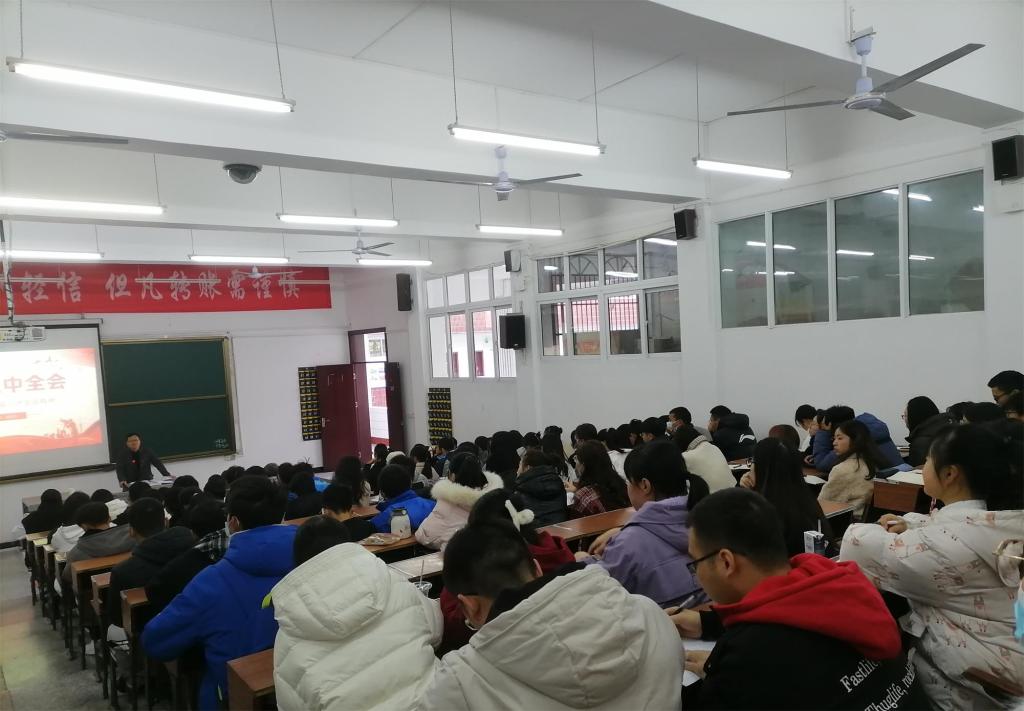 本网讯(记者 谌海容/文 刘欢/图)为增强学生政治判断力,把握正确的政治方向,12月4日,我院团总支组织纪检部联合法学院、教师教育学院、数学与统计学院、生物科学与技术学院、体育学院六院于数学与统计学院3307教室共同举办第二期“青年马克思主义者培训工程”培训班第三次授课活动。我院及其他学院全体青年马克思培训学员参加本次活动。
