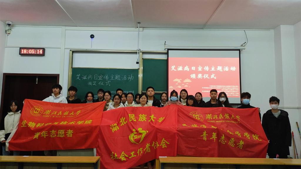 本网讯(记者 欧阳洁/文 刘睿 向丽华/图)为提高大学生对艾滋病的关注,积极传播“爱护生命,关注艾滋”的精神,12月20日,我院团总支社会实践与志愿者工作部联合生物科学与技术学院团总支社会实践与志愿者工作部,社会工作者协会在修远楼5A503教室举办艾滋病日宣传主题活动颁奖仪式,参赛选手出席本次颁奖仪式。