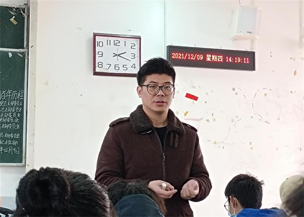 本网讯(记者 付欣淼/文 陈舒琦/图)为提升马克思主义对学生的影响力,确立青马工程学员正确思想定位,12月9日,我院联合数学与统计学院、生物科学与技术学院、体育学院、法学院、教师教育学院在德智楼9A209教室顺利开展第二期“青年马克思主义者培养工程”培训班第五次授课。体育学院团总支书记张弋明担任主讲人,我院及其他五院全体青马工程学员参加本次活动。