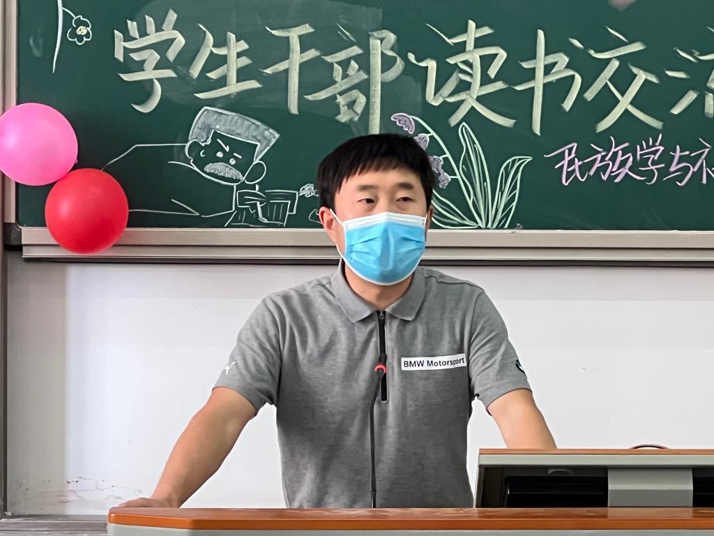 活动伊始,杨洪林老师致开场词,围绕阅读的重要性和学生干部如何通过阅读提升自我两方面展开讲述。他以升学面试为例,指出阅读经典书籍对个人知识储备、未来工作高度均有重大意义。同时,他强调学生干部应从书籍中提高文化修养,塑造健全人格,成为学生工作的得力助手。最后,他提议长期举办此类文化活动,并与社会调研相结合,指引学生干部深入发掘自身潜能。