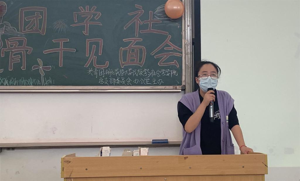 本网讯(记者 付欣淼/文 刘欢/图)为促进新生与团学干事之间的认识,加强新生对我院团学社的进一步了解,9月29日下午,我院于修远楼5B403学术报告厅顺利举办团学社2022年骨干见面会。团总支书记冷红豆受邀出席本次活动,大二大三团学社干部、全体大一新生参与本次活动。