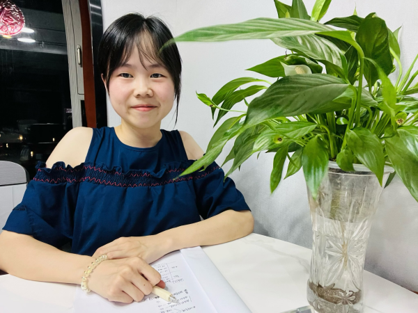 在询问到余帆在学业期间遇到的困难时,她讲到她在备考后期常常出现心态消极、情绪低落的现象。但她很幸运自己身后有一支强大的后援军,家长的信任、朋友的陪伴、老师的帮助让她不仅心怀感激,还能顺利渡过难关。她尤其感谢赵杨老师对她的帮助,无论是生活和学习中的琐事,还是对未来的规划,赵杨老师成为了她最大的倾听者,对她的鼓励与信心成为了一盏指引方向的明灯,她也因此成为了更好的自己。