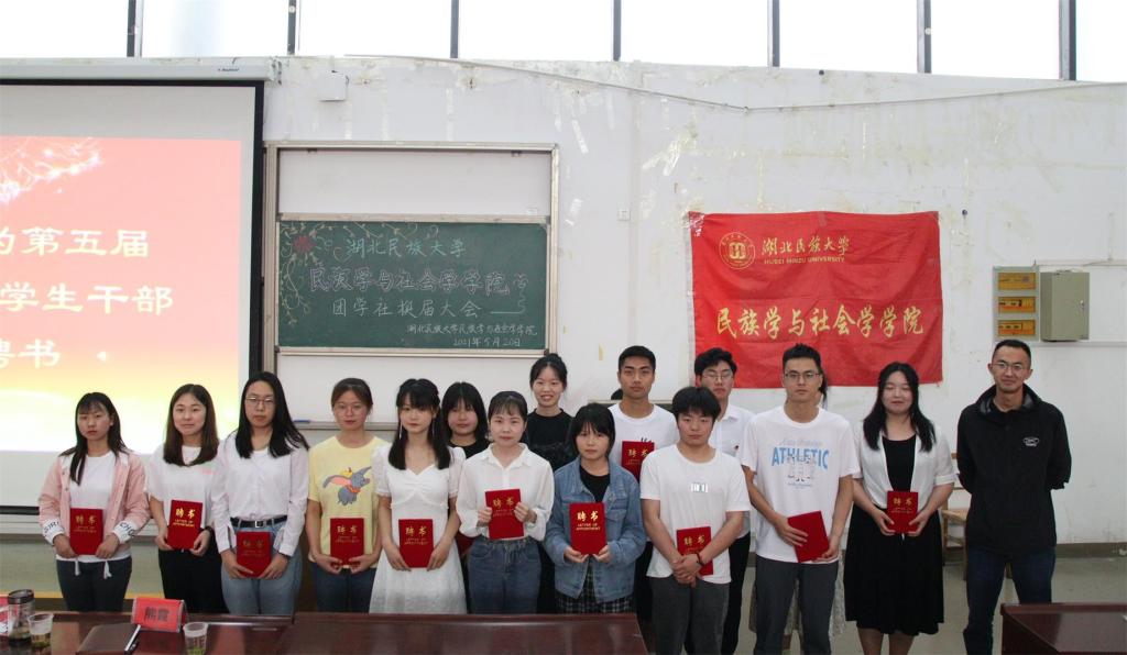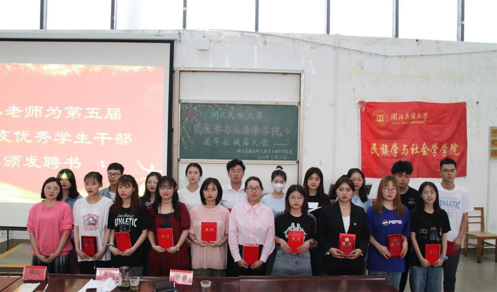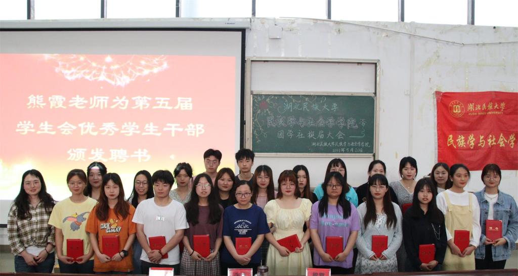 本网讯(记者 周树洋 张瑶/文 鲁心雨 刘睿/图)为更好的打造“奋进”、“智慧”、“健康”、“创新”“和谐”五个民社,培养德才兼备、团结友爱的学生干部队伍,5月20日,我院在修远楼5B404学术报告厅举行我院第六届学生干部换届大会。我院学生科科长张冰,团总支书记熊霞,学生科老师顿山受邀出席本次活动,我院团学社组织全体成员和大一大二各支部代表参与本次活动。