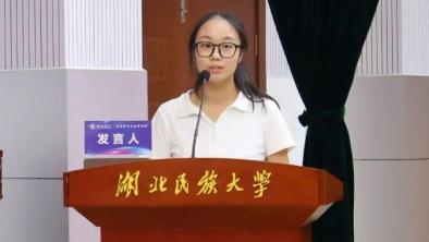 在校生代表黄楠萍发言