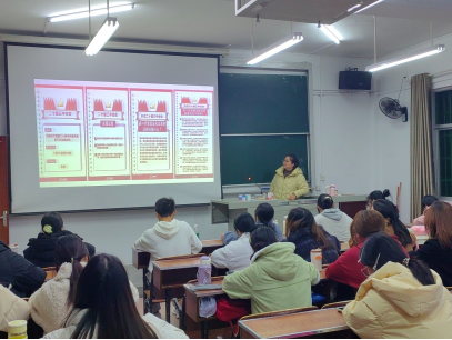 本网讯 刘丽婧)11月28日下午,我院党总支副书记申莉在外国语学院6B202教室为我院、外国语学院等五个学院的发展对象讲授党课,本次授课主题为“进一步全面深化改革,推进中国式现代化奉献青春力量”。