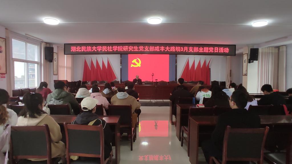 (朱戈/图文)3月17日,我院研究生党支部在咸丰县大路坝区工委开展以“传承红色基因,铸牢信仰之基”为主题的特色主题党日活动。活动由支部书记赵慧翔主持,校党委常委、纪委书记张宏磊同志、我院党总支书记曹召胜同志出席本次活动。