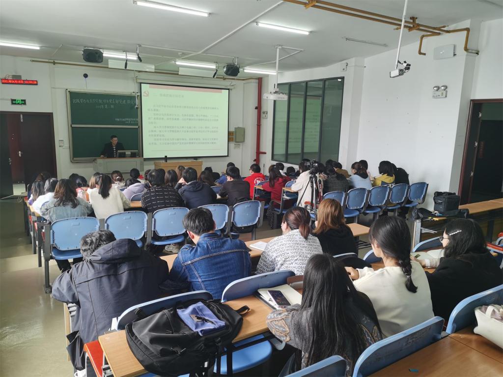 本网讯(通讯员 张冰/文  武依帆/图为深入开展党史学习教育,4月15日下午,院学生党支部在5A502教室开展“青年党员讲党课”系列微党课第一讲,学院党总支书记曹召胜、学生党支部书记张冰、全体学生党员、入党积极分子参加本次微党课。