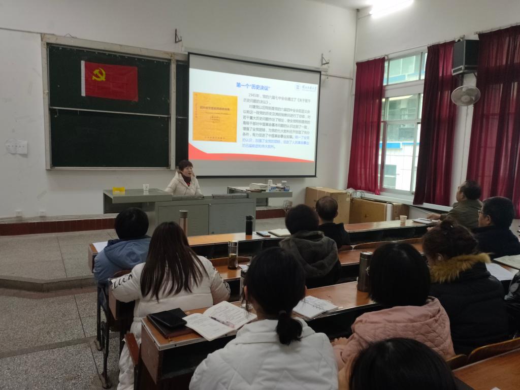 周传和副教授的此次宣讲主要从“会议召开的背景”、“会议精神的精髓要义”、“从百年党史中汲取智慧力量走好新的赶考之路”三方面进行展开。活动伊始,周教授指出,此次会议是在当今世界处于百年未有之大变局和中华民族实现伟大复兴战略全局的背景下召开的,并分别向我们解读了三个“历史决议”的内涵、特点和作用,紧接着,她将党的百年奋斗重大成就和历史经验用数字概括为“1234510”,“1”指的是一个主题,即实现中华民族伟大复兴;“2”指的是“两个确立”;“3”指的是“三次理论飞跃”;“4”指的是四个历史时期和伟大成就;“5”指的是五大历史意义;“10”指的是十个方面宝贵经验,最后,周教授提出,我们要从百年党史中汲取智慧力量走好新的赶考之路,应坚定历史自信,坚守理想信念,坚持党的建设,坚持自我革命,坚持担当责任,不断增强进行伟大斗争的意志和本领,确保党不变质、不变色、不变味。