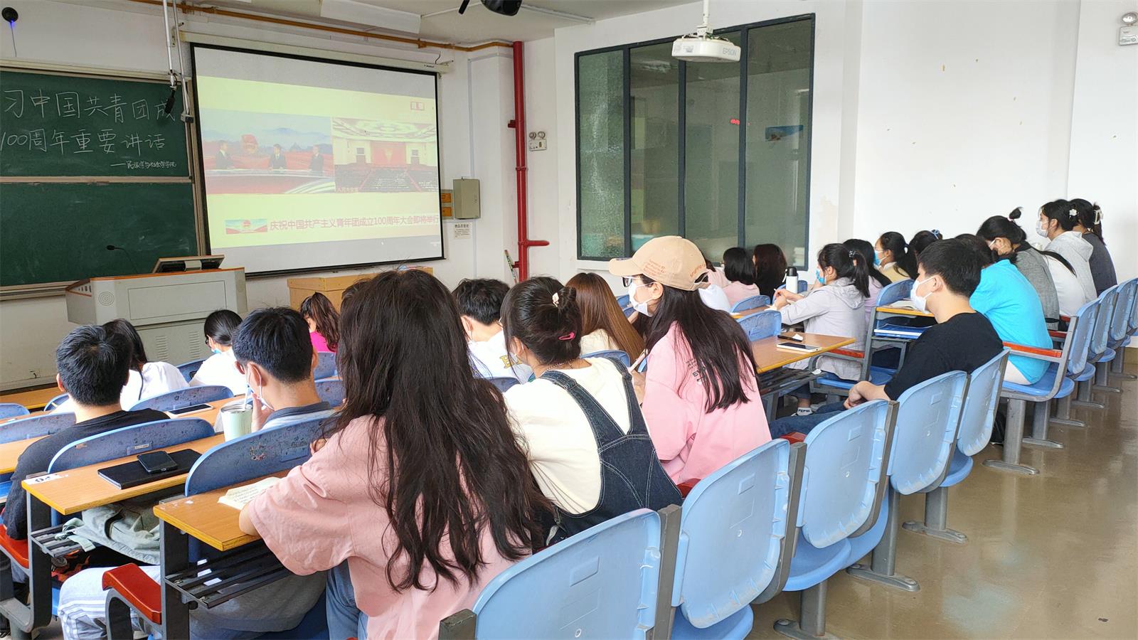 本网讯(记者 周树洋/文 刘睿/图) 5月10日上午,我院在修远楼5A502教室成功组织庆祝中国共产主义青年团成立 100周年大会直播观看活动。我院全体学生干部、部分学生参与学习。