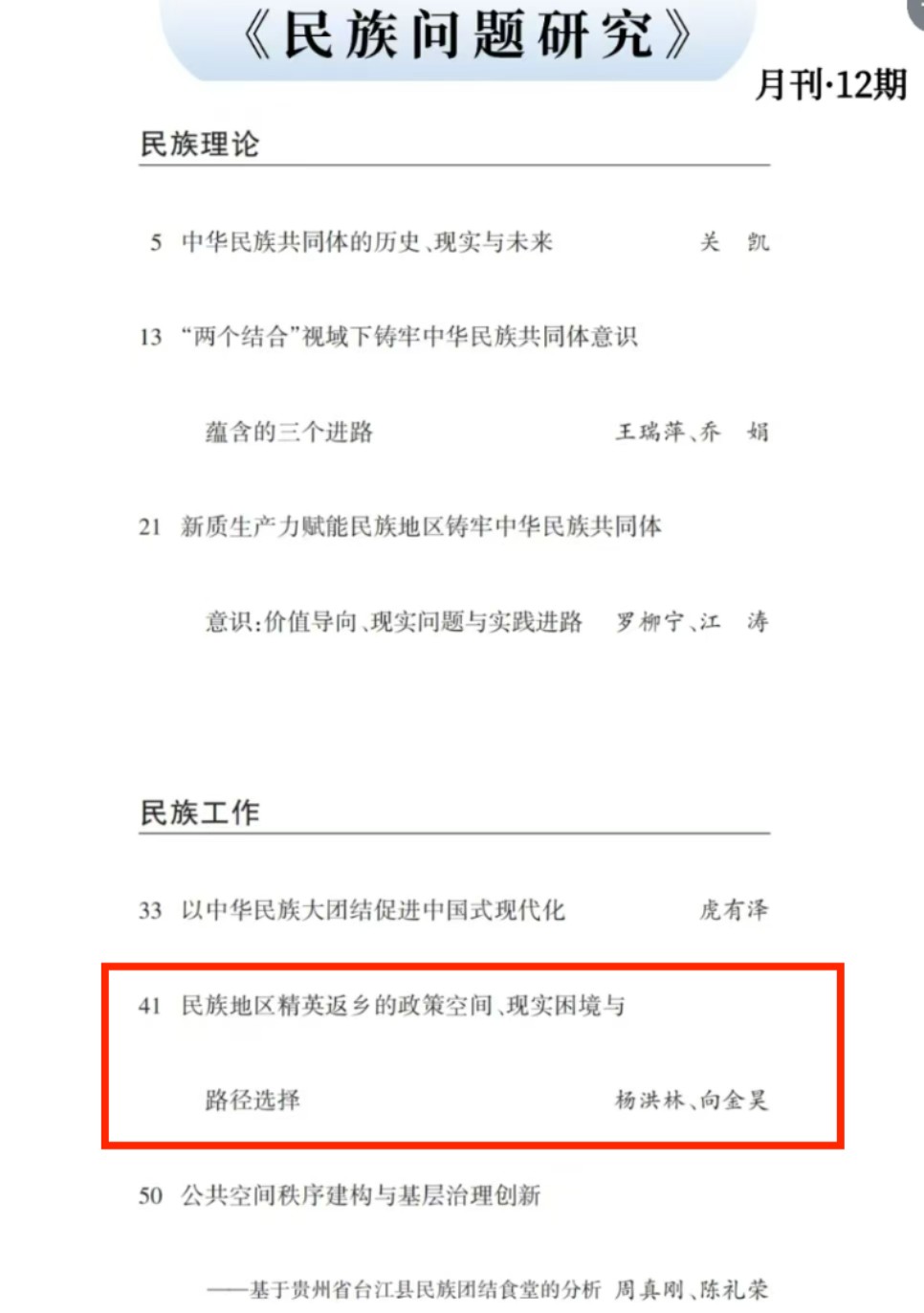 (本网讯 黄俊/文)近日,我院杨洪林教授发表在《365电子娱乐官方网站学报(哲学社会科学版)》2024年第4期的学术论文《民族地区精英返乡的政策空间、现实困境与路径选择》,被中国人民大学复印报刊资料《民族问题研究》2024年第12期全文转载。
