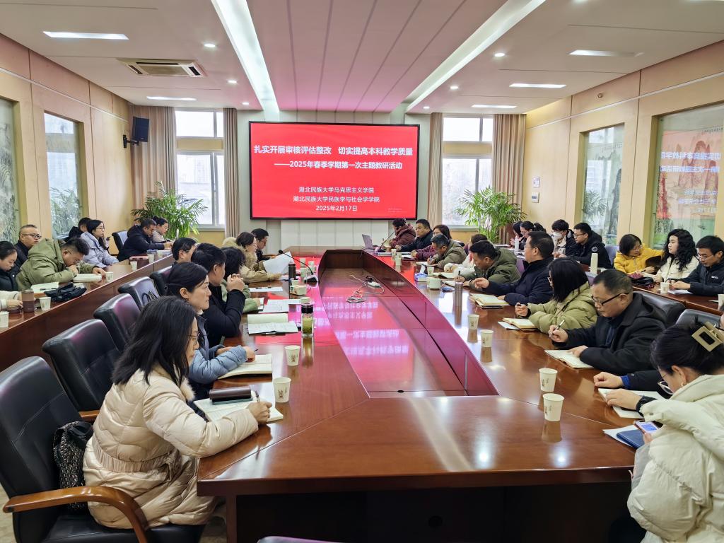 (本网讯 潘华云/文 王海丽/图教研促发展,携手共进步。217上午民族学与社会学学院和马克思主义学院马克思主义学院会议室联合开展新学期第一次主题教研活动活动以扎实开展审核评估整改,切实提高本科教学质量为主题。校党委副书记邓磊、校党委统战部常务副部长丁莉、学工处处长方云霞、民族学与社会学学院与马克思主义学院党政班子成员及部分教师代表出席会议。会议由校党委统战部常务副部长丁莉主持。
