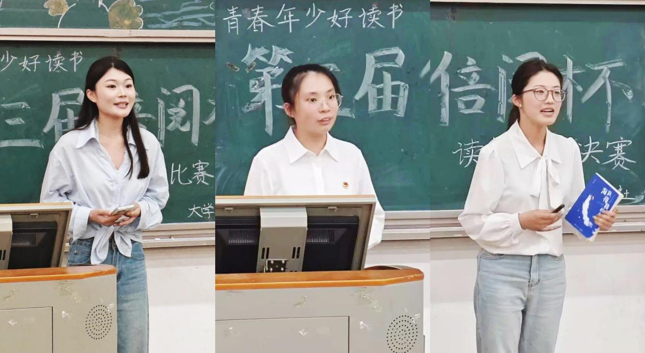 (本网讯 记者 姚婷 邱语欣/文 周伟 邹跃宁 连子萌/图)4月20日,学校第三届“倍阅杯·流浪图书”读书分享比赛决赛在我校修远楼5B105教室举行,这是由我校大学生瞭望社与倍阅书店联合主办的学生社团活动。文学与传媒学院教授李莉,我院杨国庆、熊志颖、王潇三位老师,及倍阅书店负责人向满受邀担任评委。经过初赛,共13名选手参与决赛角逐,以赛会友,共赴一场书香盛宴。
