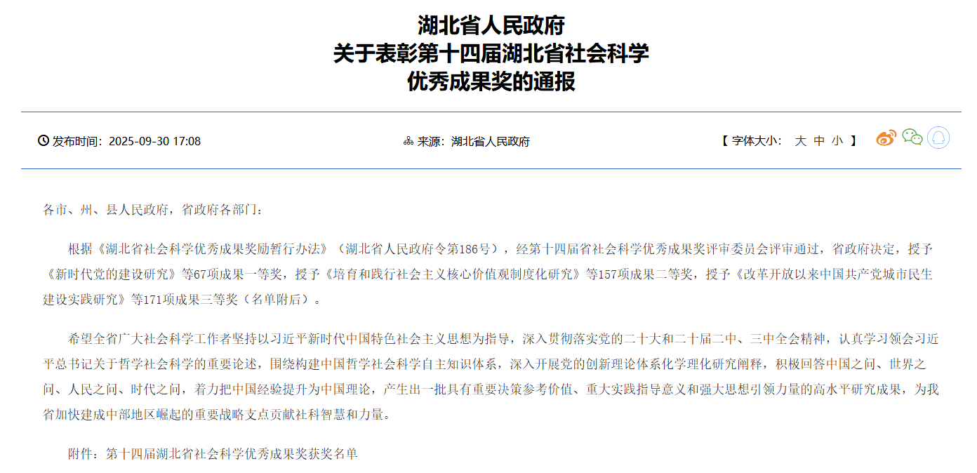 此次湖北省社科奖获奖,是我院深耕科学研究,厚积薄发的成果,不仅提升了民族学学科影响力,也为民族学博士点培育学科建设打下了坚实基础。