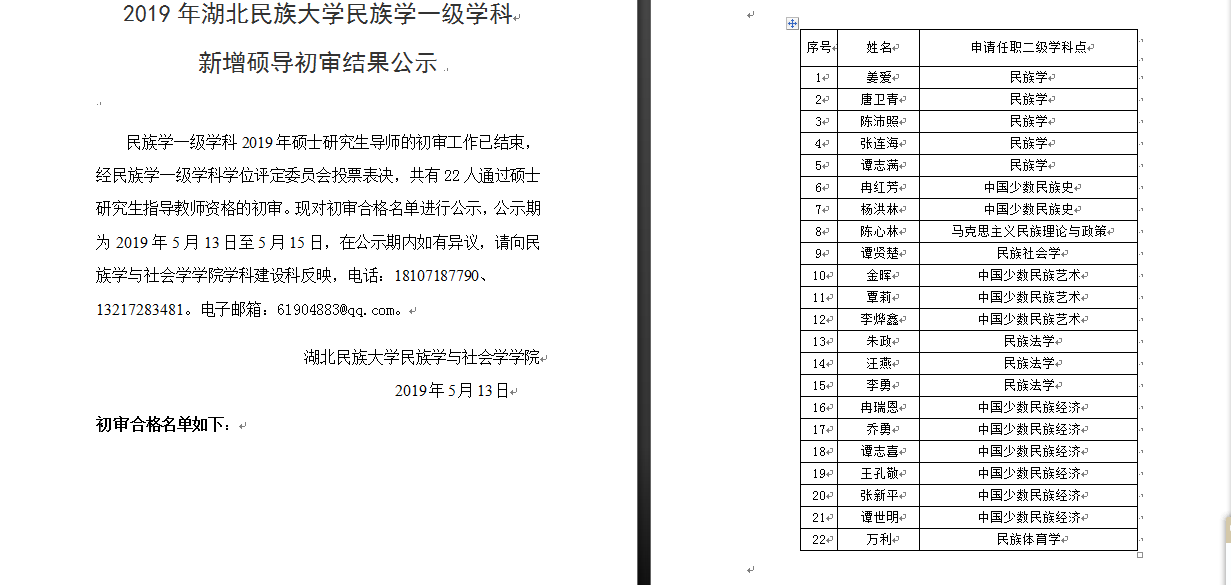 2019年365电子娱乐官方网站民族学一级学科新增硕导初审结果公示