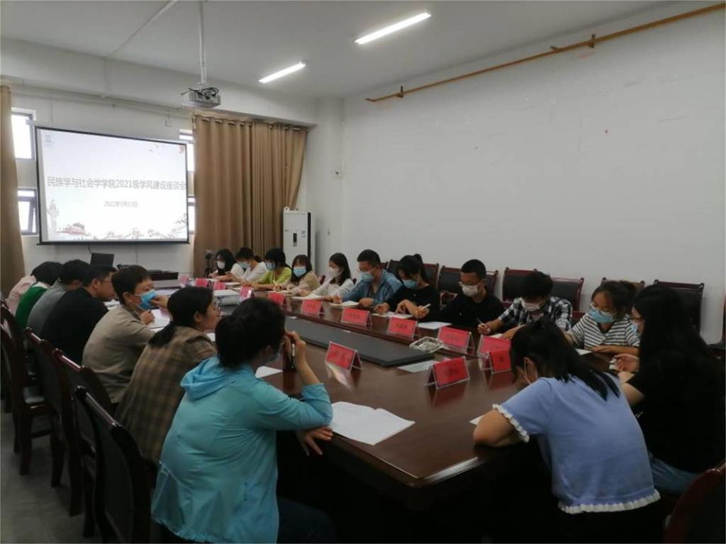 本网讯(记者 陈慧超/文 刘欢 卢子畅/图)为推进我院学风建设,营造良好的学习环境,5月13日,我院在修远楼5B1205会议室召开2021级学风建设座谈会。我院党总支书记曹召胜,党总支副书记杨洪林,副院长唐卫青,教学科科长潘华云,学生科科长张冰,团总支书记熊霞,廖正丽博士受邀出席本次座谈会,部分学生参与座谈。