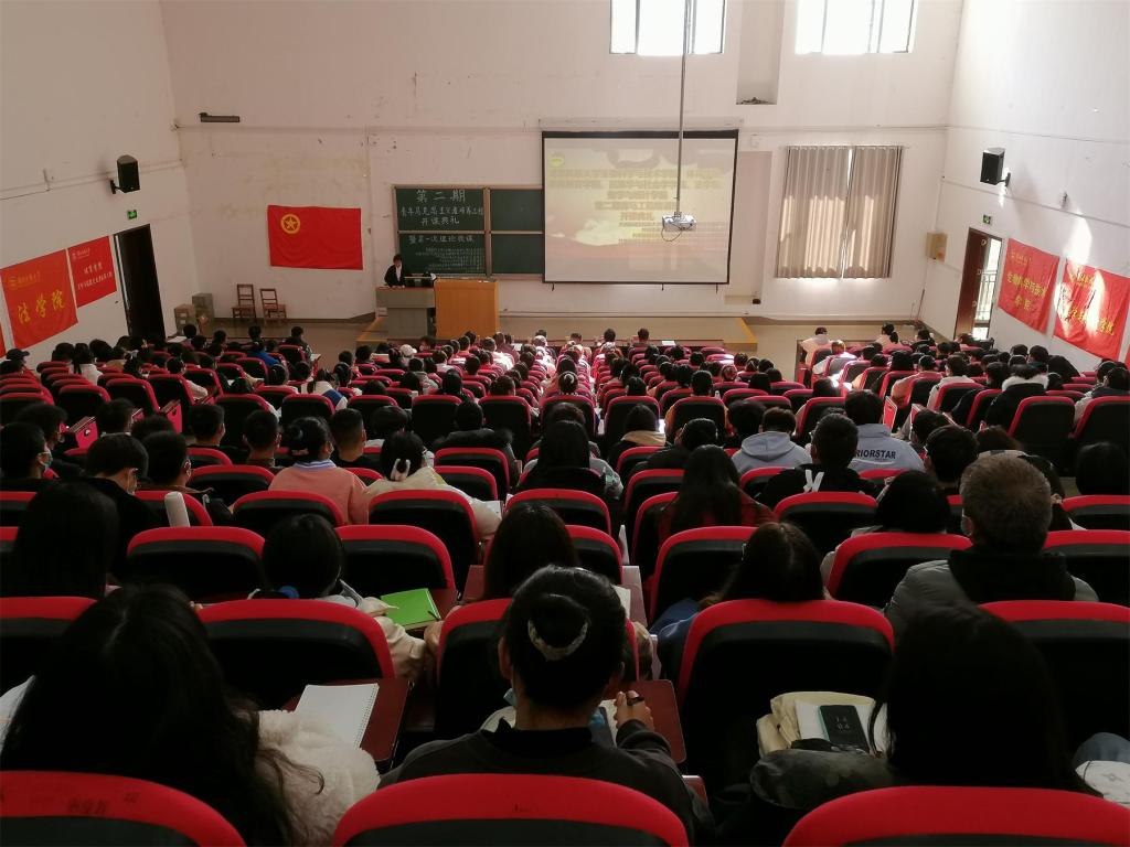 开课典礼在全体起立奏唱共青团团歌中拉开帷幕。紧接着,生物科学与技术学院团总支书记陈杰、教师教育学院团总支书记胡雪、我院团总支书记熊霞宣读“青马工程”相关条例。随后,本期学员代表张粤上台发言表达自己的坚定信念。最后,体育学院团总支书记张弋明寄语学员,青年肩负历史使命,青年须坚定理想信念、勤奋学习、积极奉献,争当先锋模范。