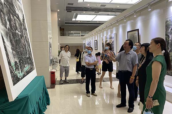 秦群燕到画展现场参观,向商守善教授了解了画展情况,与各位嘉宾交流。