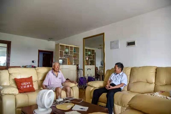 在1949年前入党老党员、离休干部赵友森家,党委书记向前进与老人亲切地拉家常,听老人讲述战争年代参加革命的珍贵记忆,仔细询问身体状况、生活情况,同时对老人曾为学校的发展付出的不懈努力表示感谢,祝福老人健康长寿。