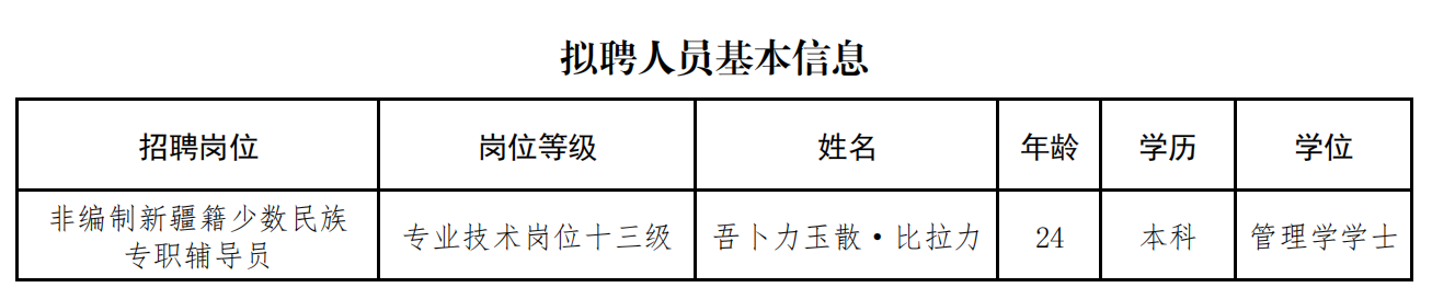 根据《365电子娱乐官方网站2023年面向社会公开招聘非编制新疆籍少数民族专职辅导员公告》有关要求,经面试考核、体检考察,现将365电子娱乐官方网站2023年面向社会公开招聘工作人员拟聘人员名单(第一批)予以公示。公示期从2023年8月30日至9月7日。