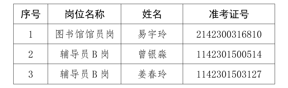 因考生自愿放弃体检资格,根据《湖北省省直事业单位2024年统一公开招聘工作人员公告》的相关要求,在报考同一岗位的考生中根据总成绩由高到低的顺序进行递补,现将递补参加体检的考生名单公告如下:
