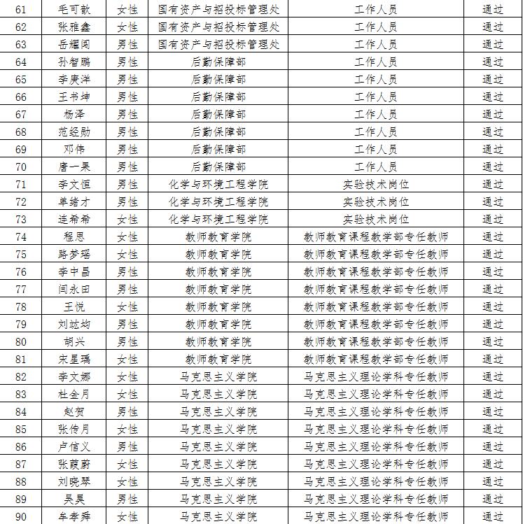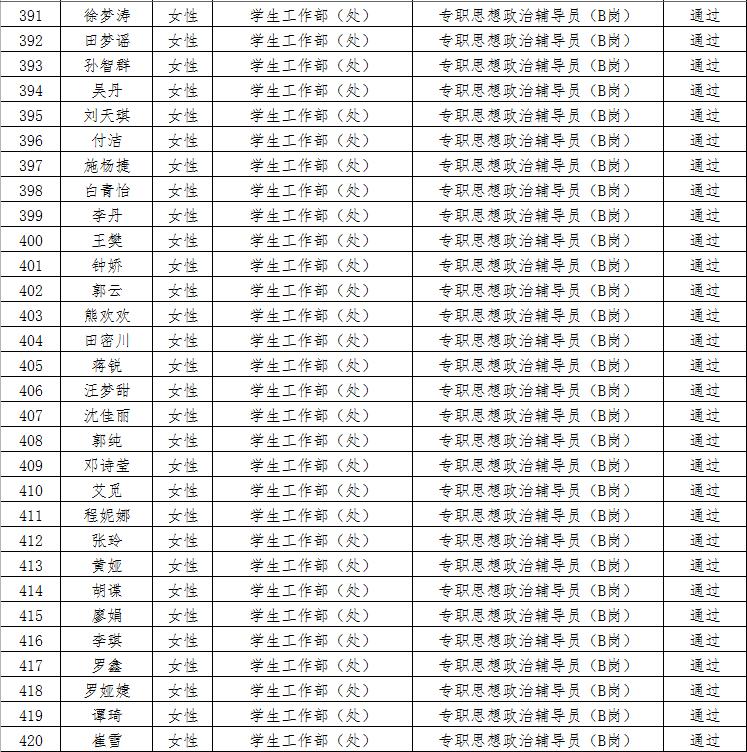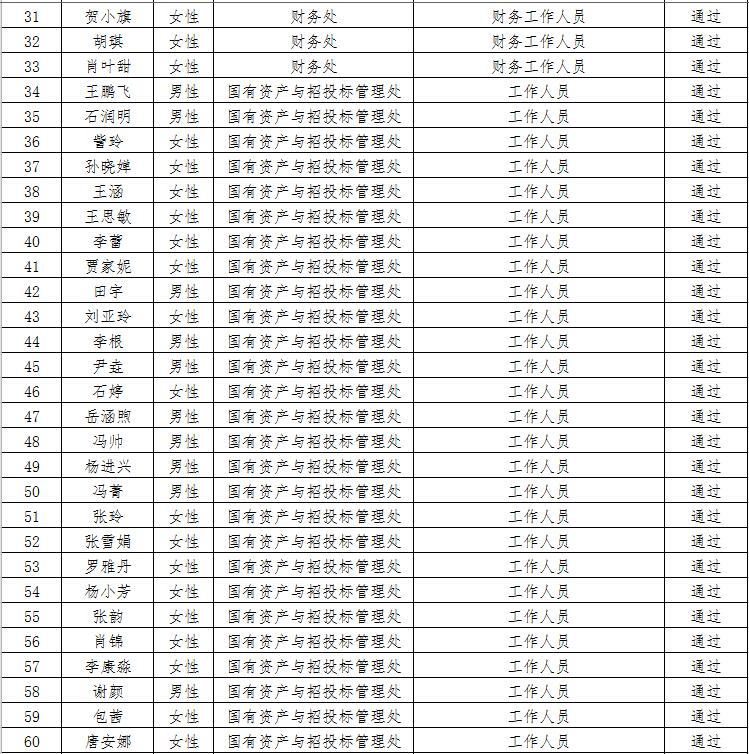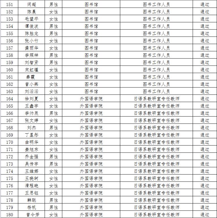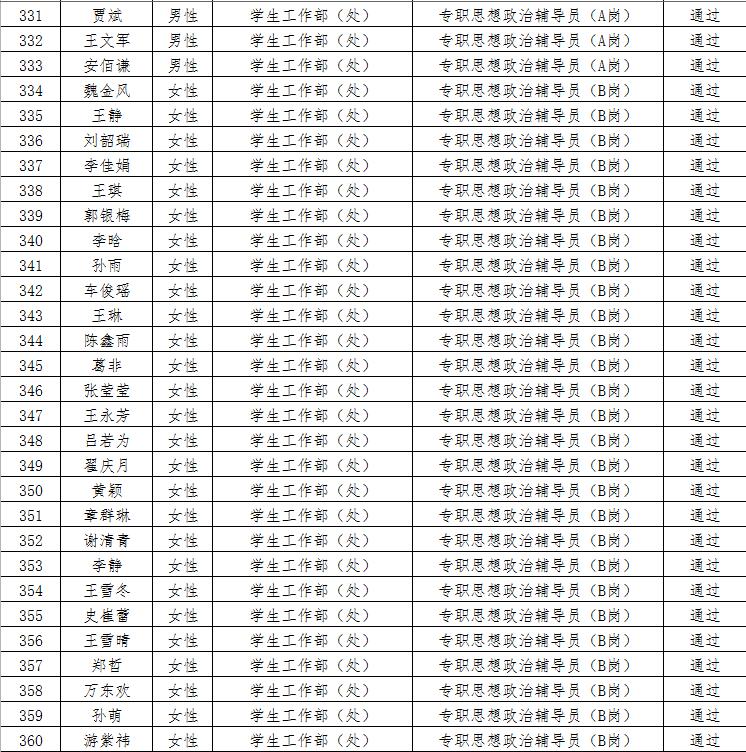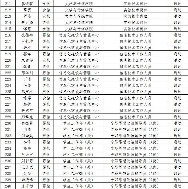经资格审查,下列考生符合报考条件,准予参加笔试(笔试时间为415日上午8:30-10:30),现将资格审查合格名单进行公示。如有疑问请于202346日下午17:00点前向365电子娱乐官方网站人事处反馈。