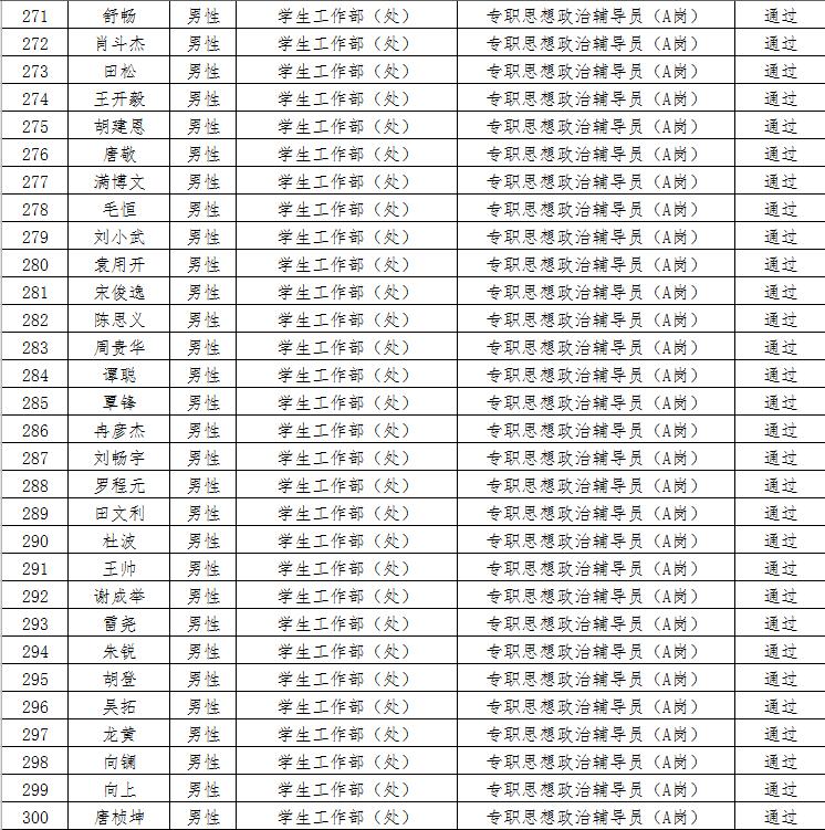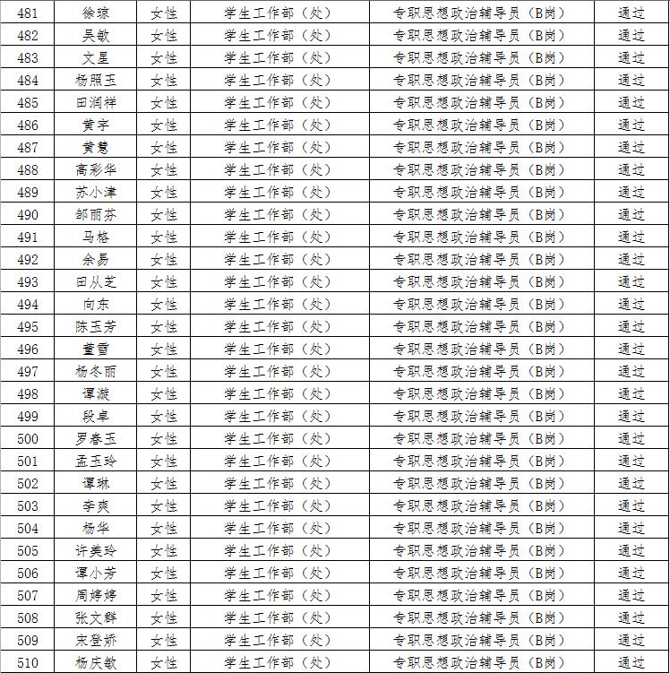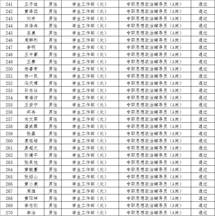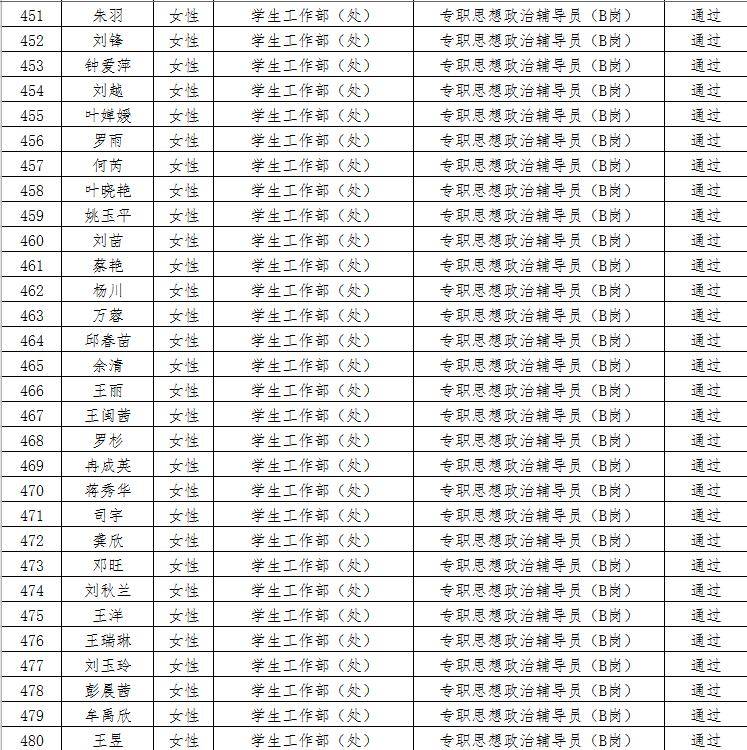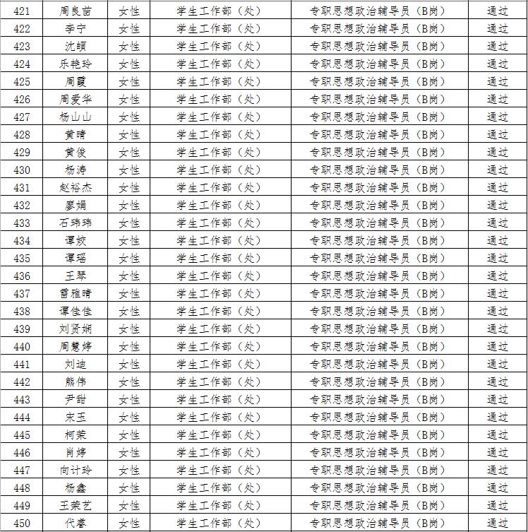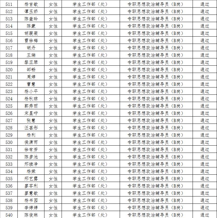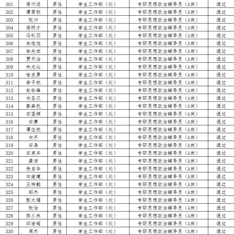 经资格审查,下列考生符合报考条件,准予参加笔试(笔试时间为415日上午8:30-10:30),现将资格审查合格名单进行公示。如有疑问请于202346日下午17:00点前向365电子娱乐官方网站人事处反馈。
