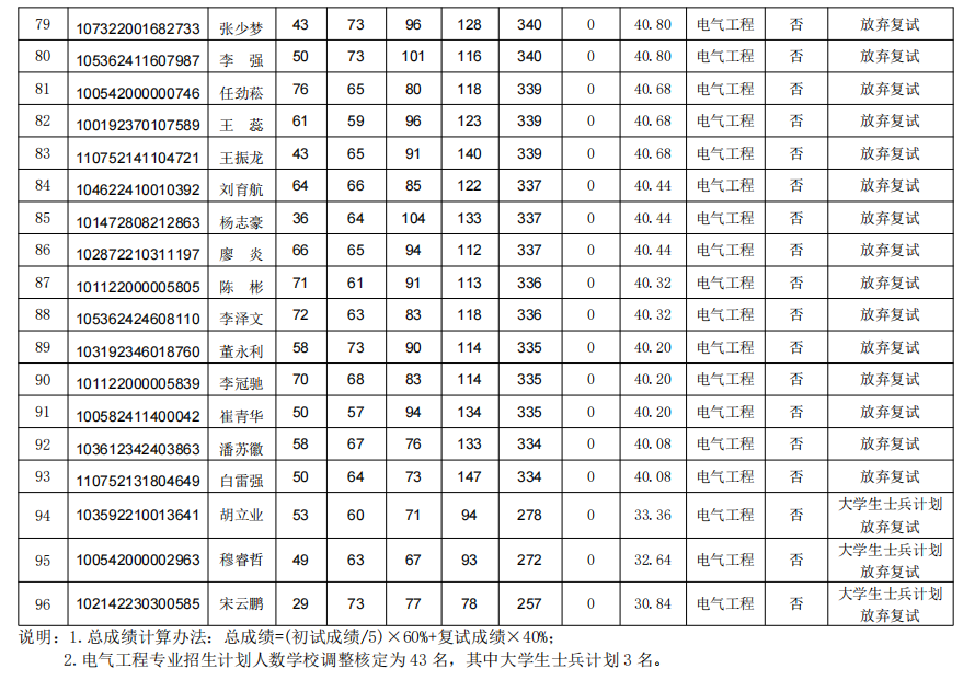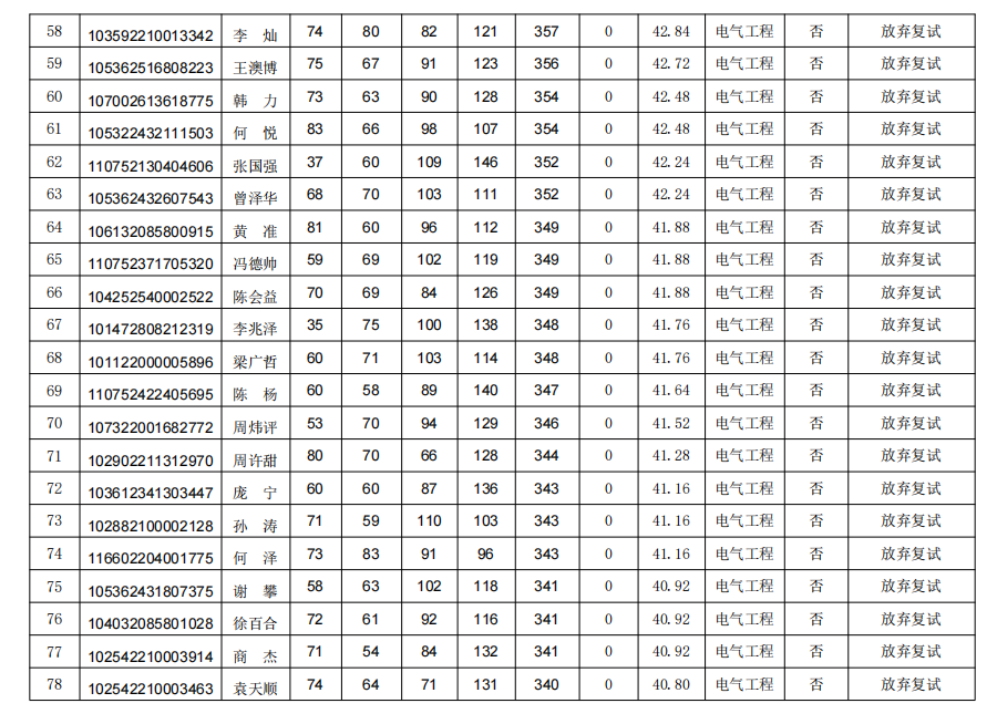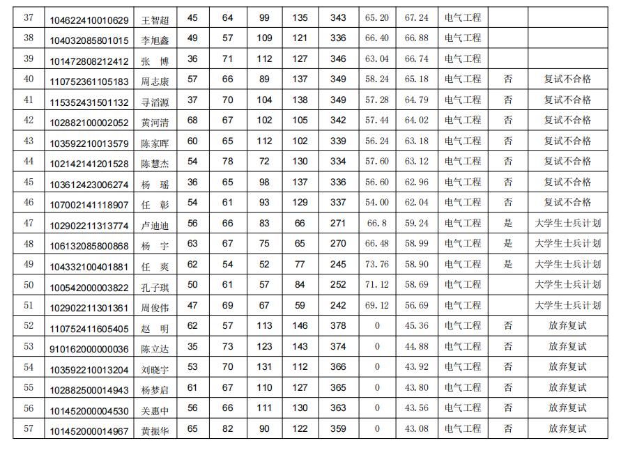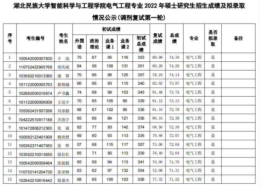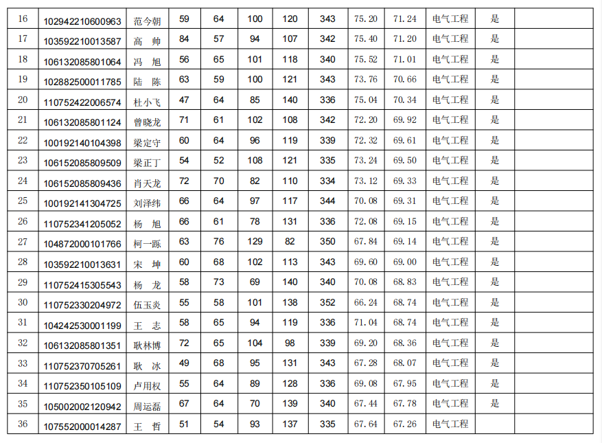 365电子娱乐官方网站智能科学与工程学院电气工程专业2022年硕士研究生招生成绩及拟录取 情况公示(调剂复试第一轮)