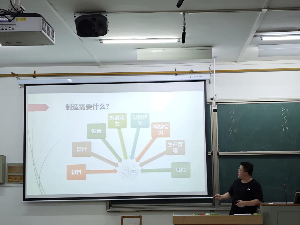 推介会开始前,李老师强调材料方向在智能制造领域有着关键地位。他指出,随着制造业向智能化、高端化迈进,材料智能成型加工作为前沿交叉领域,融合了材料科学、自动化控制、人工智能等多学科知识,是推动制造业转型升级的核心力量,前景广阔。他以“制造需要什么”为切入点引入本次话题,从方方面证明了材料加工的重要性。随后,他从日常生活中的例子,介绍了制造工艺基于材料,也赋予材料新的性能;最后,展示出往届生就业的实例,佐证了行业对材料智能成型加工专业人才的需求很大,就业前景较好。