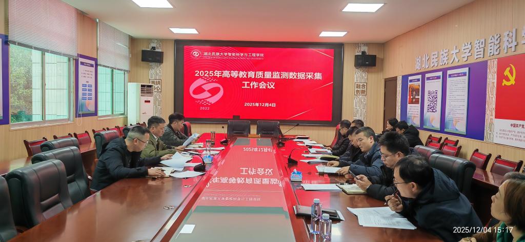 面贯彻落实《教育部办公厅关于做好高等教育质量监测2025年数据采集工作的通知》(教督厅函〔2025〕16号)及湖北省教育厅相关工作要求,高效有序推进我院数据采集与填报工作,2025年12月4日,智能科学与工程学院组织召开“2025年高等教育质量监测数据采集工作部署会议”。会议由教学副院长向军主持,学院领导、专业负责人、科室负责人及系领导参加会议。