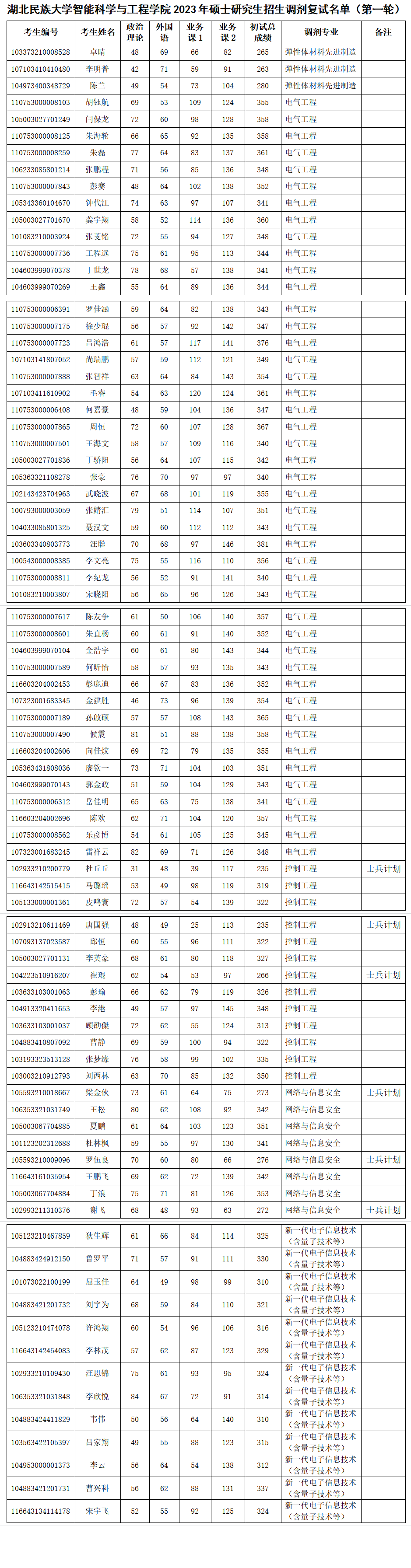 365电子娱乐官方网站智能科学与工程学院2023年硕士研究生招生调剂复试名单(第一轮)