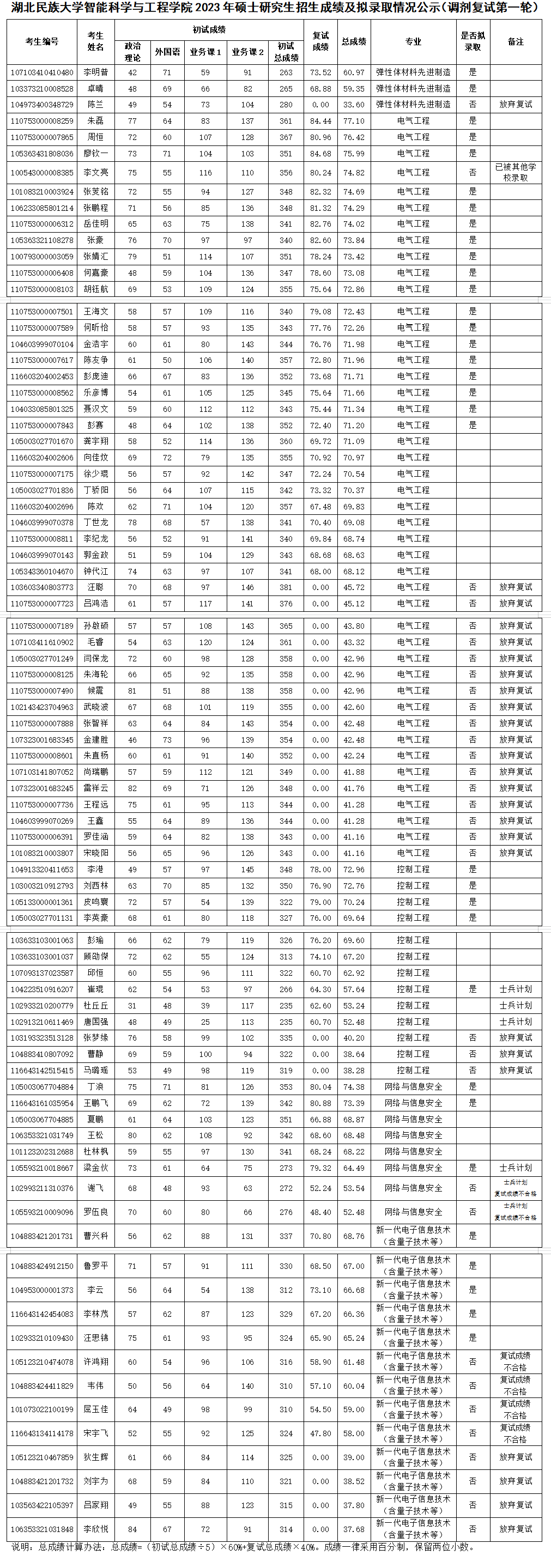 365电子娱乐官方网站智能科学与工程学院2023年硕士研究生招生成绩及拟录取情况公示(调剂复试第一轮)