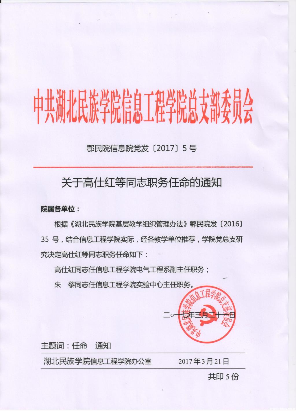 关于高仕红等同志职务任命的通知