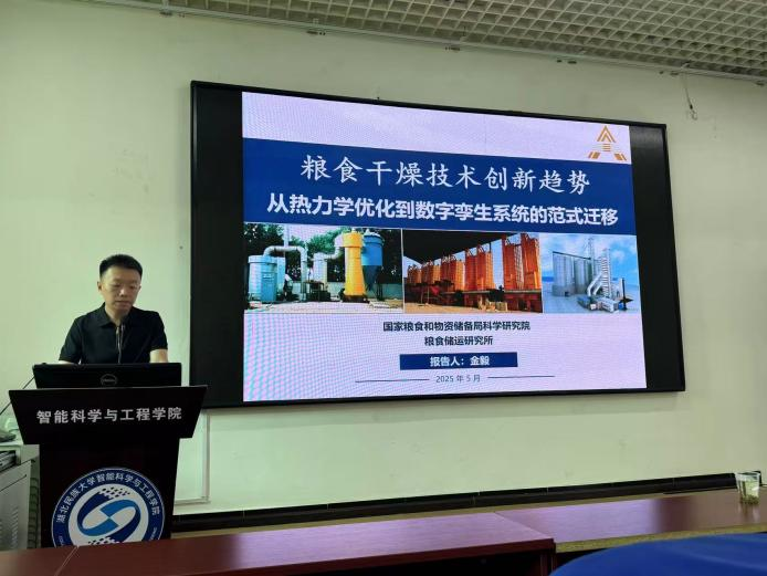 2025年5月21日上午,国家粮食和物资储备局科学研究院尹君研究员与金毅副研究员在学院213学术报告厅内开展“储粮多场耦合技术研究与应用”和“粮食干燥技术创新趋势—从热力学优化到数字孪生系统的范式迁移”学术讲座,钱楷副院长主持讲座。